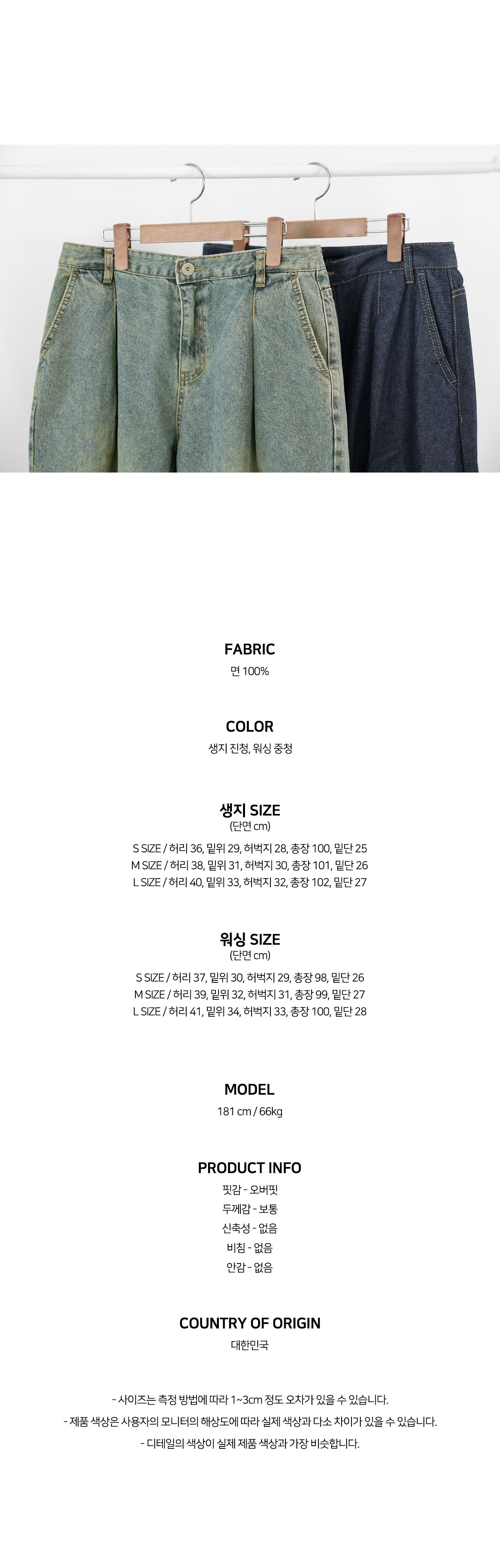 2TYPE 데일리 와이드 원턱 빈티지 워싱 & 유니크 진청 생지 데님