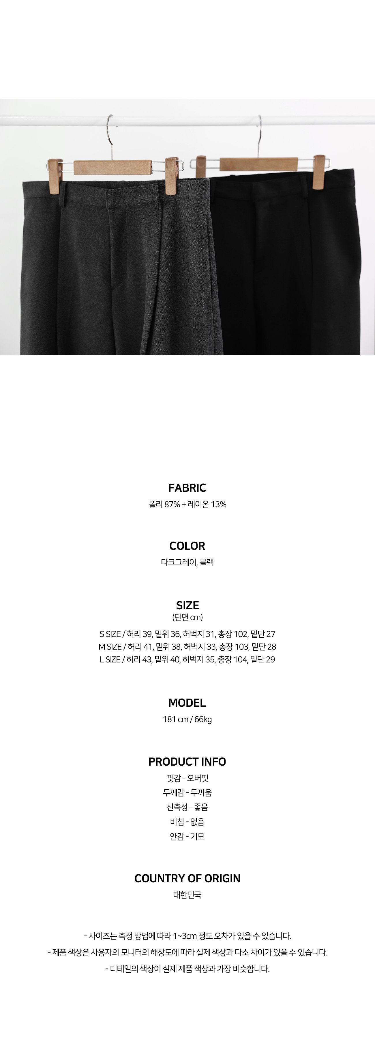 2컬러 와이드 기모 핀턱 슬랙스